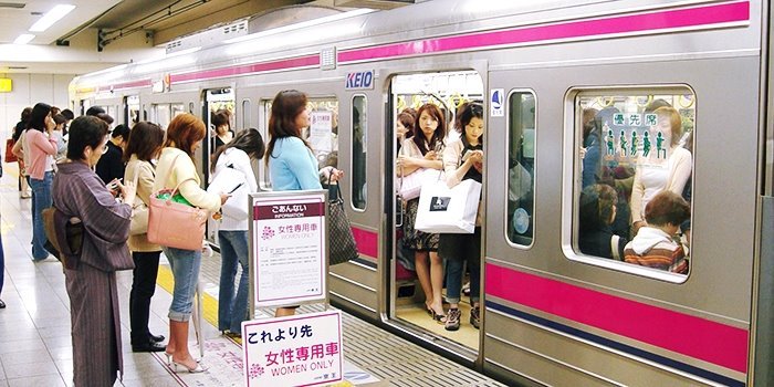일본전철에는 여성만 탑승할 수 있는 여성전용칸이 따로 있습니다.